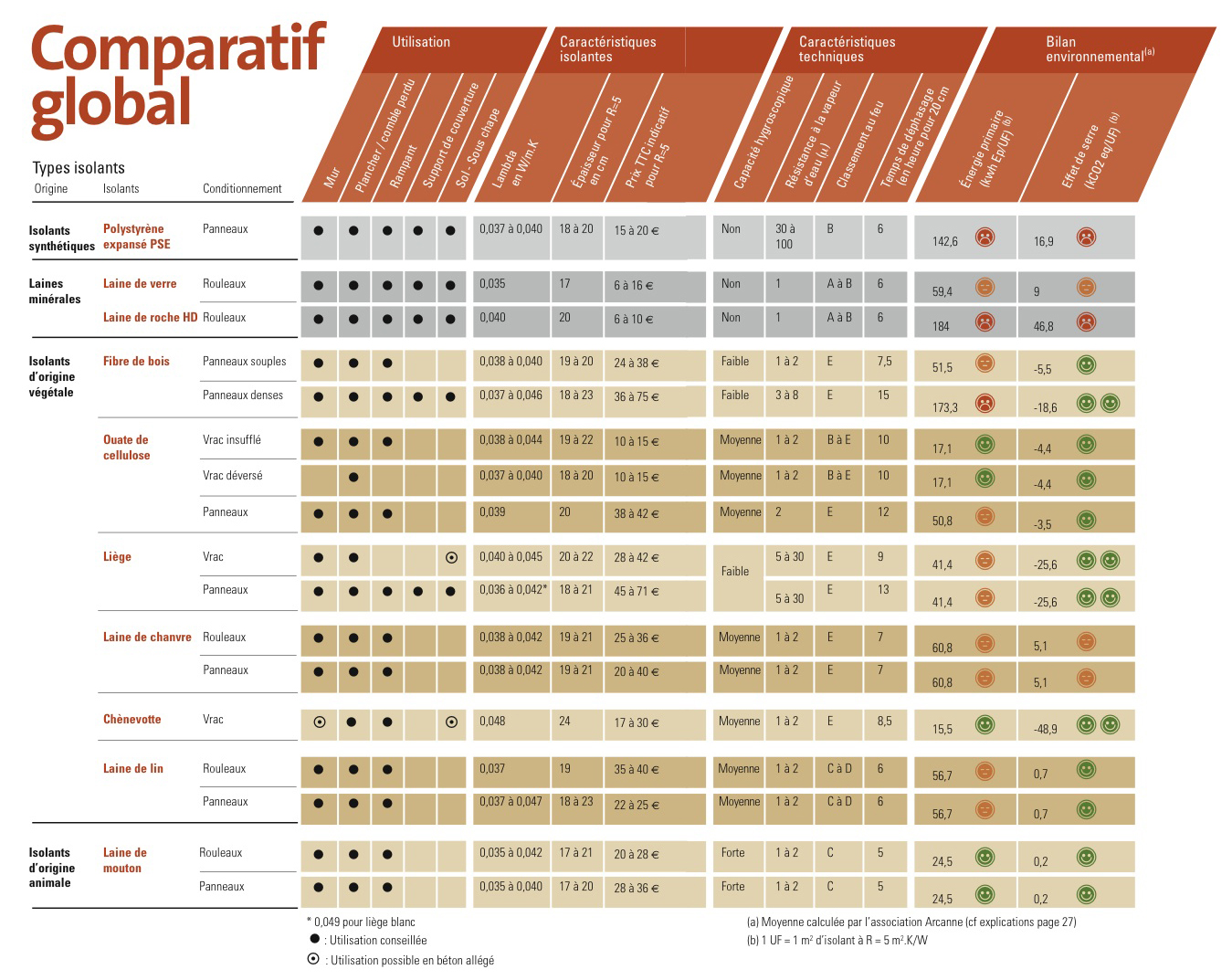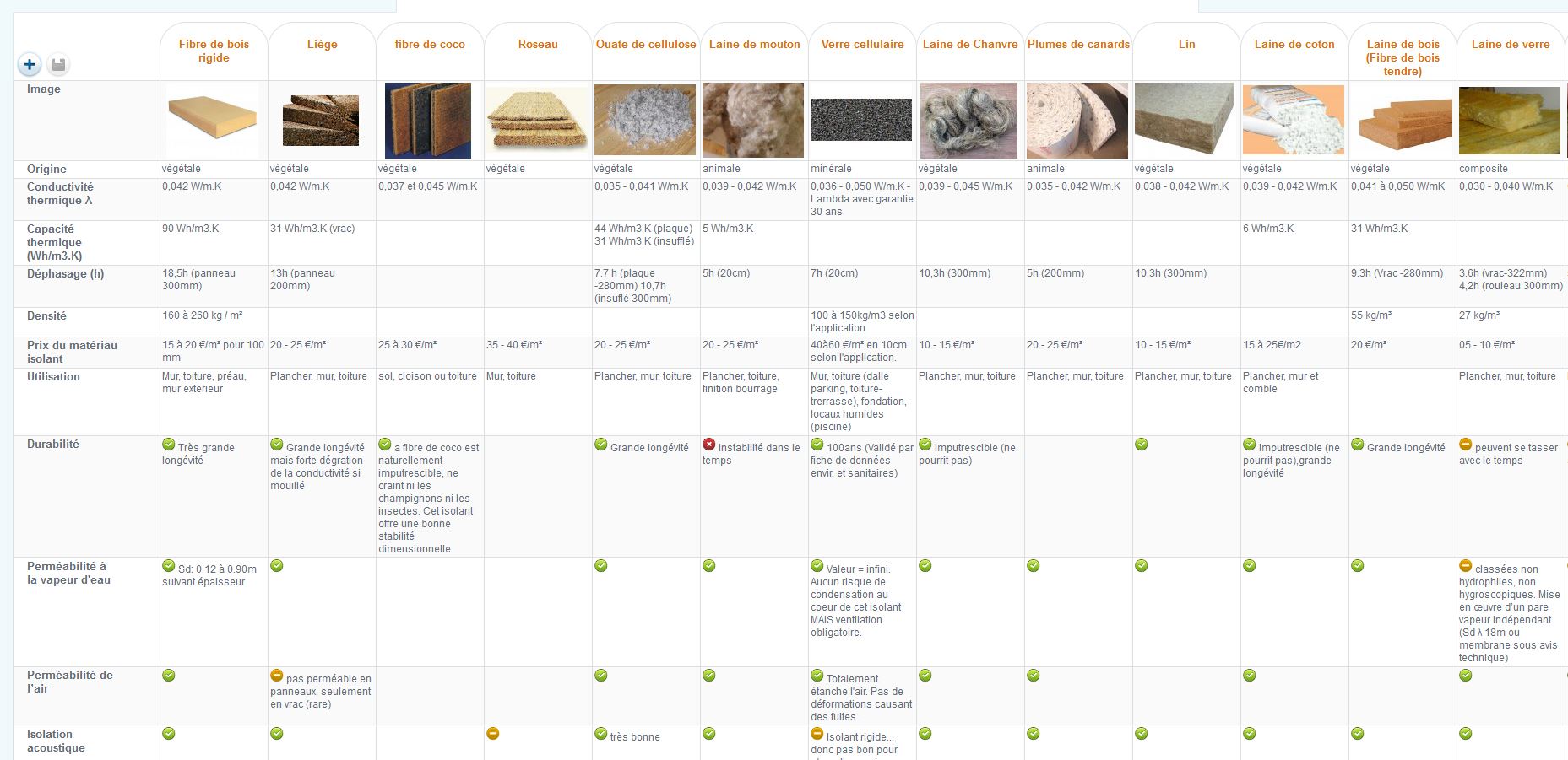 Voir les tableaux existants comme le comparatif collaboratif ici : Tableau comparatif des matériaux isolants thermiques https://socialcompare.com/fr/comparison/tableau-comparatif-pour-l-isolation-thermique-d-un-logement-ou-sa-renovation